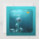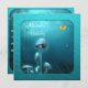 Invitation Birthday Event Party Celebration announcement, Pretty Silver Blue Enchanted fantasy Garden, mushrooms, toadstools, yellow butterfly and glittering creatures with Bright Shiny Aqua Blue Frame. Customise for any event.