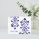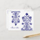 Thank You postcards with blue script letters and a restored etching of daisies, a shield and scrolling leaves in blue from an antique manuscript.