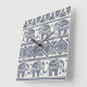 Blue Ethnic Elephant Pattern Square Wall Clock