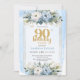 Blue Eucalyptus Gold Accent 90th Birthday Invite