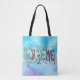 Doodle art, hand drawn lettering of the city of Eugene!! Washy blue blur background on this cute tote!!