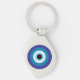 Modern blue evil eye design on silver keychain