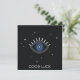 Blue eye in space, evil eye protection talisman, good luck text, all seeing eye, third eye between stars in the night.