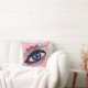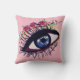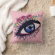 Blue eye & flowers drawing, custom colour background on cushion interior.
