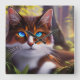 Gorgeous Blue Eyed Kitty surrounded by trees and greenery.