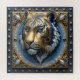 This 3D artwork mimics the craftsmanship of a goldsmith metalworker specialising in gold, silver, and other precious metals. It features a 3D tiger's portrait in metallic gold and silver tones, set against a background of intricately detailed baroque-style leaves. The artwork is printed to capture the rich textures visual effects of the metallic elements.