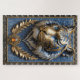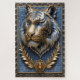 This 3D artwork mimics the craftsmanship of a goldsmith metalworker specialising in gold, silver, and other precious metals. It features a 3D tiger's portrait in metallic gold and silver tones, set against a background of intricately detailed baroque-style leaves. The artwork is printed to capture the rich textures visual effects of the metallic elements.