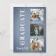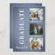Blue Modern Three Photos Graduation Card with Fabric Texture.