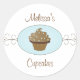 A chocolate cupcake with chocolate icing and blue pearl sprinkles....yum!!
