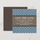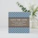 Trendy and chic Fancy Lattice Save the Date Announcements featuring a stylish circle and diamond studded pattern over a vibrant dusk blue background with a broad two-toned brown border. This elegant save the date invitation is perfect for announcing your modern wedding. Easy to customise, simply add your wedding details in the text fields provided. Click "Customise It" to find more personalisation options.