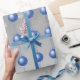 Dress your presents in style with this Blue Fancy Christmas Ornament Wrapping Paper. Showcasing a fancy ornament design accented with curled ribbons, delicate fall snowflakes, and a soft grey background, it brings a polished touch to any holiday theme. The repeating tiled pattern and simple layout highlight festive Christmas baubles, making it a versatile choice for all your packages. A perfect Christmas gift supply, this wrapping paper adds elegance and seasonal charm to every present.