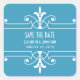 Simple and elegant Fancy Ornamental Save the Date Stickers in blue and white featuring a sophisticated art deco style ornamental flourish border. Easy to customise, simply add your wedding details in the text fields provided. Click "Customise It" to find more personalisation options.