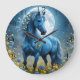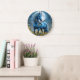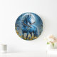 Blue Fantasy Magical Horse Moon Flowers, Large Clock