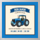 Baby room birth announcement Poster featuring modern typography and cute blue tractor. Add all your lovely details on this easy-to-use template to make your own unique birth stats Poster.