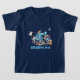 Birthday boy t-shirt with farm tractor design. Dark blue tee has a farm theme with a cow, puppy, cat and bird as part of the tractor design. Perfect for the honoree at a barnyard party.