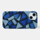 This Zazzle brand phone case is patterned with a simulated stained glass mosaic pattern in shades of blue and black contrasts. Choose from slim or tough styles for a variety of models for iPhones. Select yours from the drop down menu.