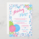 A fun candy themed Bat Mitzvah invitation design featuring faux glitter confetti border with lollipop and swirl candy illustrations. Cute colour combination of blue, pink and green. Designs are flat printed illustrations/graphics - NOT ACTUAL GLITTER. Graphics by www.jwillustrations.com
