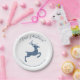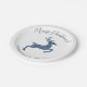 Blue Faux Glitter Look Jumping Deer With Text Paper Plate