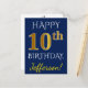 Blue, Faux Gold 10th Birthday + Custom Name Postcard