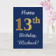 Blue, Faux Gold 13th Birthday + Custom Name Card