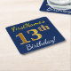 Blue, Faux Gold 13th Birthday + Custom Name Square Paper Coaster