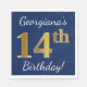 Blue, Faux Gold 14th Birthday + Custom Name Napkin