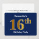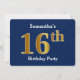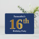 Blue, Faux Gold 16th Birthday Party + Custom Name Invitation