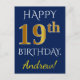Blue, Faux Gold 19th Birthday + Custom Name Postcard