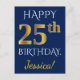 Blue, Faux Gold 25th Birthday + Custom Name Postcard