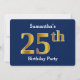 Blue, Faux Gold 25th Birthday Party + Custom Name Invitation