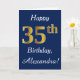 Blue, Faux Gold 35th Birthday + Custom Name Card