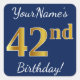 Blue, Faux Gold 42nd Birthday + Custom Name Square Sticker
