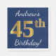 Blue, Faux Gold 45th Birthday + Custom Name Napkin