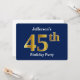 Blue, Faux Gold 45th Birthday Party + Custom Name Invitation