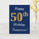 Blue, Faux Gold 50th Birthday + Custom Name Card