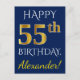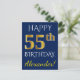 Blue, Faux Gold 55th Birthday + Custom Name Postcard
