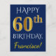 Blue, Faux Gold 60th Birthday + Custom Name Postcard