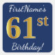 Blue, Faux Gold 61st Birthday + Custom Name Square Sticker