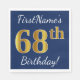 Blue, Faux Gold 68th Birthday + Custom Name Napkin