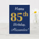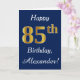 Blue, Faux Gold 85th Birthday + Custom Name Card