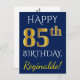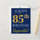 Blue, Faux Gold 85th Birthday + Custom Name Postcard