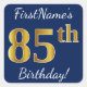 Blue, Faux Gold 85th Birthday + Custom Name Square Sticker