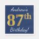 Blue, Faux Gold 87th Birthday + Custom Name Napkin