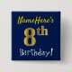 Blue, Faux Gold 8th Birthday, With Custom Name 15 Cm Square Badge