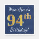 Blue, Faux Gold 94th Birthday + Custom Name Napkin