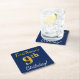Blue, Faux Gold 9th Birthday + Custom Name Square Paper Coaster