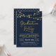Blue Faux Gold Strings of Lights Graduation Party Invitation