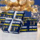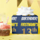 This wrapping paper design features a message like "FIRSTNAME’S 13th BIRTHDAY!", with the "13th" having a faux/imitation gold-like colour appearance, and with the name and "BIRTHDAY" in a fun, bold font. The name can be customised, and the background is coloured blue. Wrapping paper like this could perhaps be used when wrapping birthday gifts being given to somebody in celebration of their thirteenth birthday. [~Z0000209]