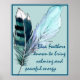 Poster Blue Feathers. Text: Blue Feathers....known to bring calming and peaceful energy. Add this unique piece of work to your entry hallway, bedroom, bathroom, or gift to someone special in your life. Be kind and have a wonderful day, from Caristys Creations. We appreciate your visit.