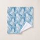 Beautiful blue and pale blue feathers cover these lovely bathroom towels with a monogrammed center.